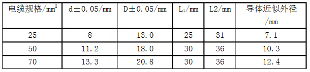 (1)確定壓接接線螺栓內徑和外徑。查閱電纜導體近似外徑并結合電纜導體實測數(shù)據(jù),依據(jù)電纜導體插入應略緊且兼顧方便插入的原則,確定壓接接線螺栓內徑d;依據(jù)壓接接線螺栓內徑和電纜規(guī)格,計算推導壓接接線螺栓環(huán)形面積,根據(jù)JB/T 2436.2-1994標準,確定壓接接線螺栓外徑D。