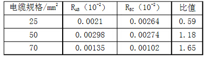 根據(jù)標準需檢測A、B和B、C間電阻(分別為如、R彤),端頭壓接部位的電阻與所連接同長度導線電阻的比值為:(2RAB一RBC)/RBC,壓接電阻檢測結果如圖所示。