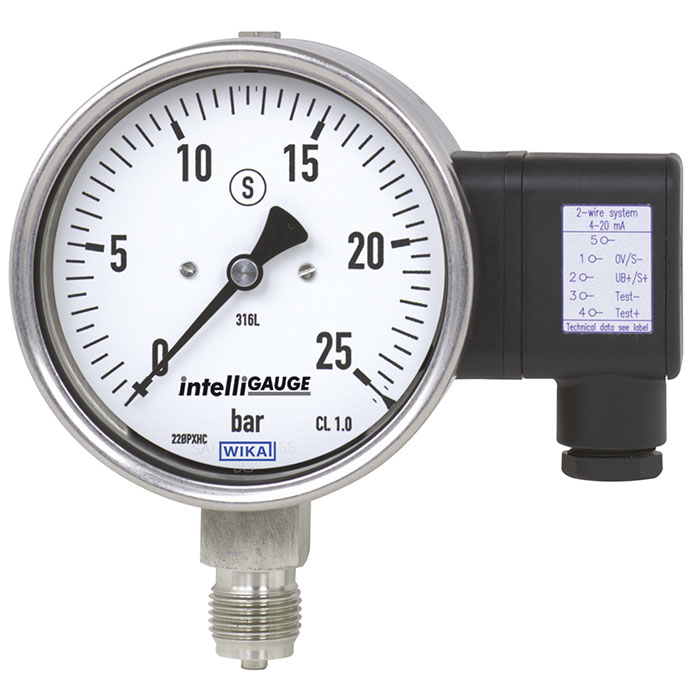 該型號壓力表在高質(zhì)量的機(jī)械壓力表中集成了威卡電子變送器,不僅具備電信號傳輸功能,還支持本地機(jī)械顯示。