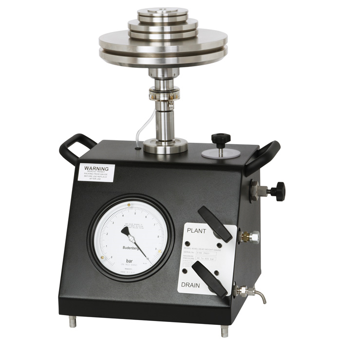 低壓精密刻度盤上指示出測(cè)量的壓力,砝碼的質(zhì)量與刻度盤上的指示相互對(duì)應(yīng)。